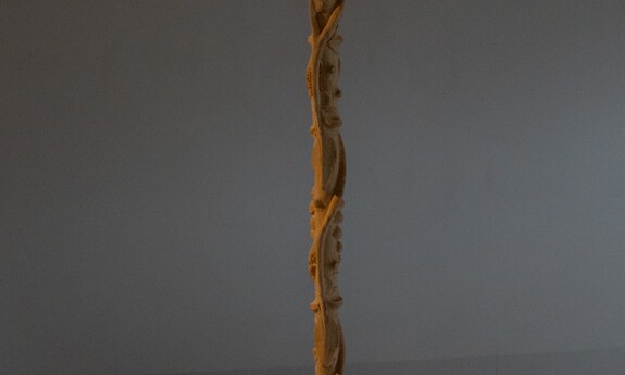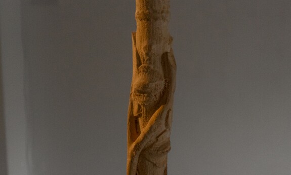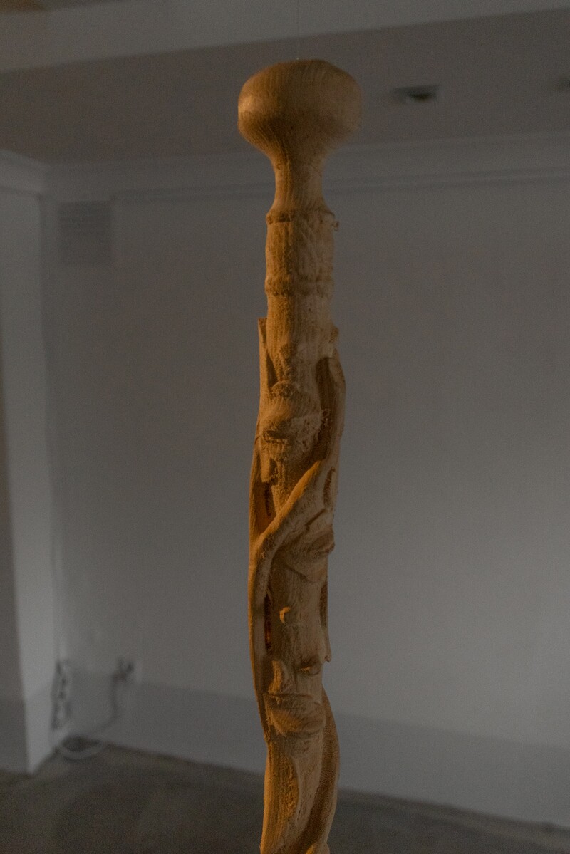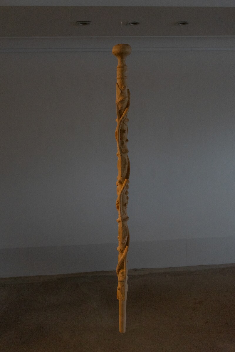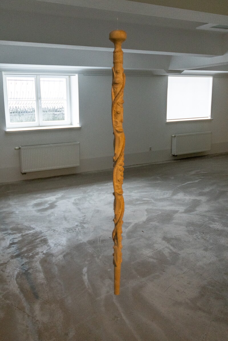 przesiedlono na tereny obecnej Ukrainy. Byli mieszkańcy i mieszkanki wsi oraz ich potomkowie i potomkinie kultywują tradycje rzeźbiarskie w ukraińskim uzdrowisku Truskawiec oraz jego okolicach. Artysta wykonał kopię rzeźby, której oryginał stworzył jeden z byłych mieszkańców Wólki. Powstała w Ukrainie drewniana rzeźba laski została zeskanowana, a następnie wydrukowana techniką frezowania 3D w drewnie. Mechanicznie wydrukowana kopia łemkowskiej rzeźby jest tytułową „Protezą”, namiastką wymazanego dziedzictwa kulturowego.