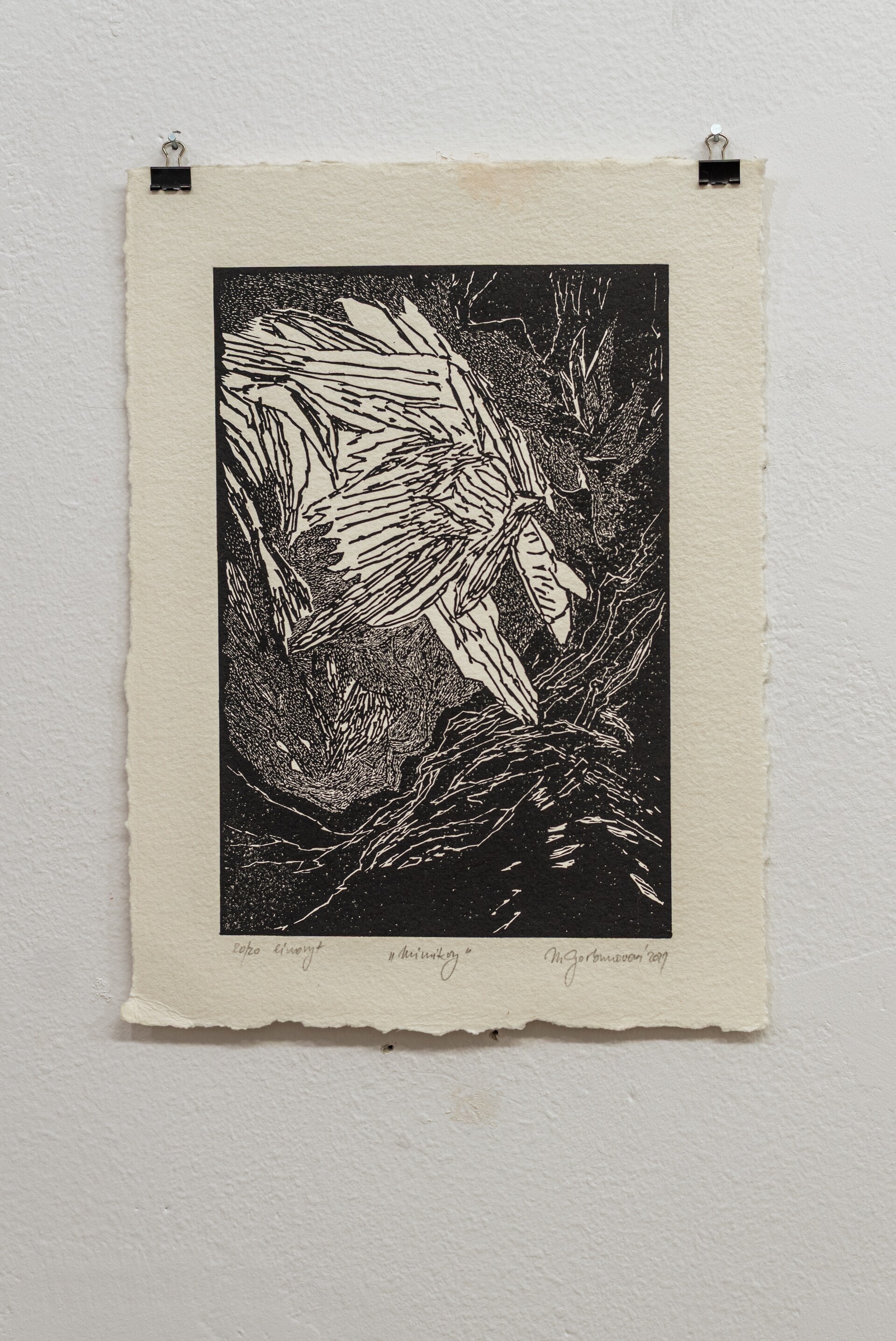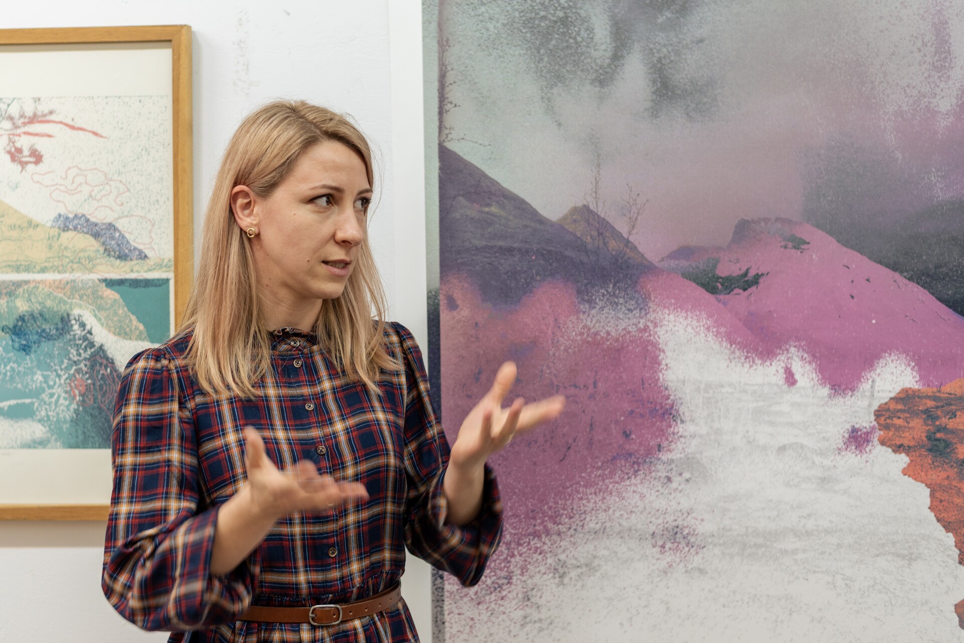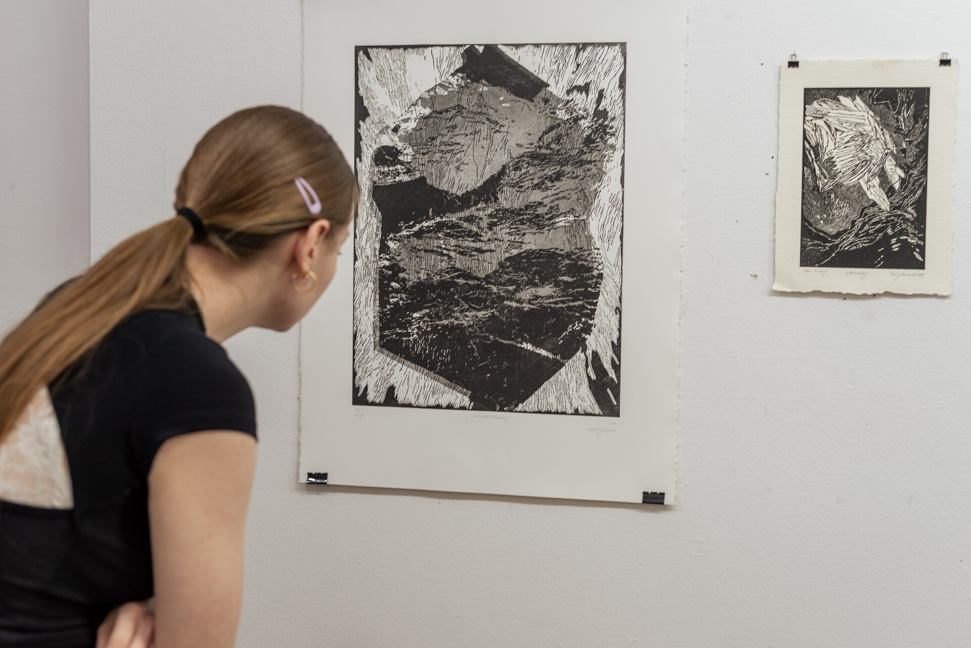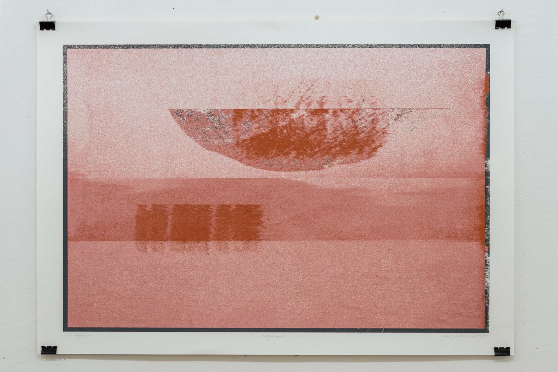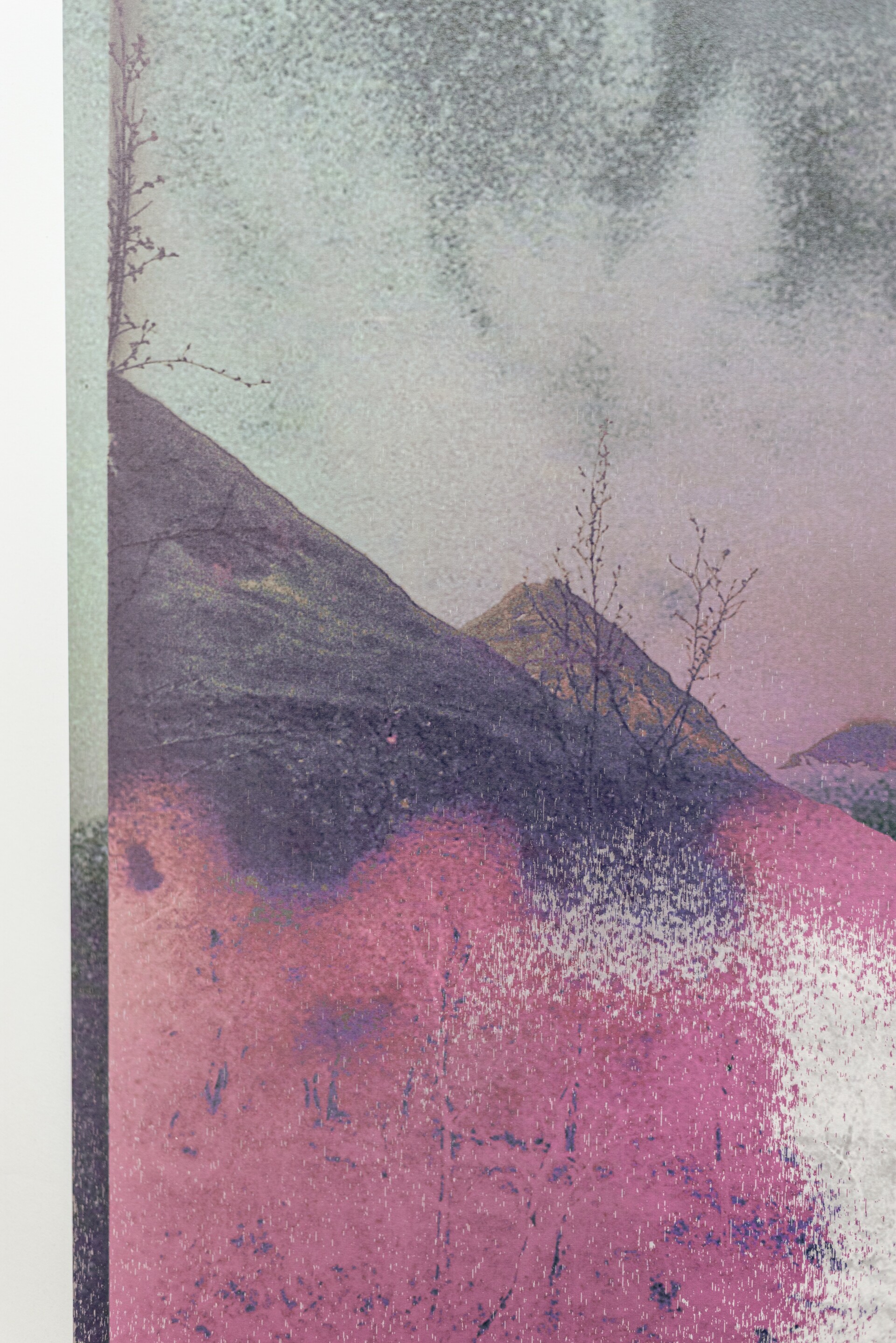 Pracuję w różnych technikach graficznych, takich jak sitodruk, linoryt, druk cyfrowy oraz rysunek, często łącząc je w formy mieszane. Techniki te pozwalają mi badać strukturę krajobrazu na wielu poziomach – od szerokiej formy po detale mikrostrukturalne, jak porosty tworzące na wyżynach skomplikowane, niemal abstrakcyjne układy. Nie dążę do realistycznej dokumentacji; interesuje mnie atmosfera, cisza i materialność miejsca, a także napięcie między tym, co trwałe, a tym, co ulega powolnemu znikaniu.
