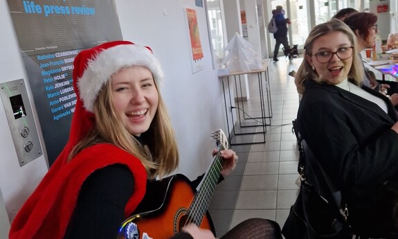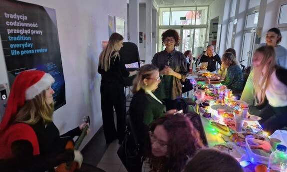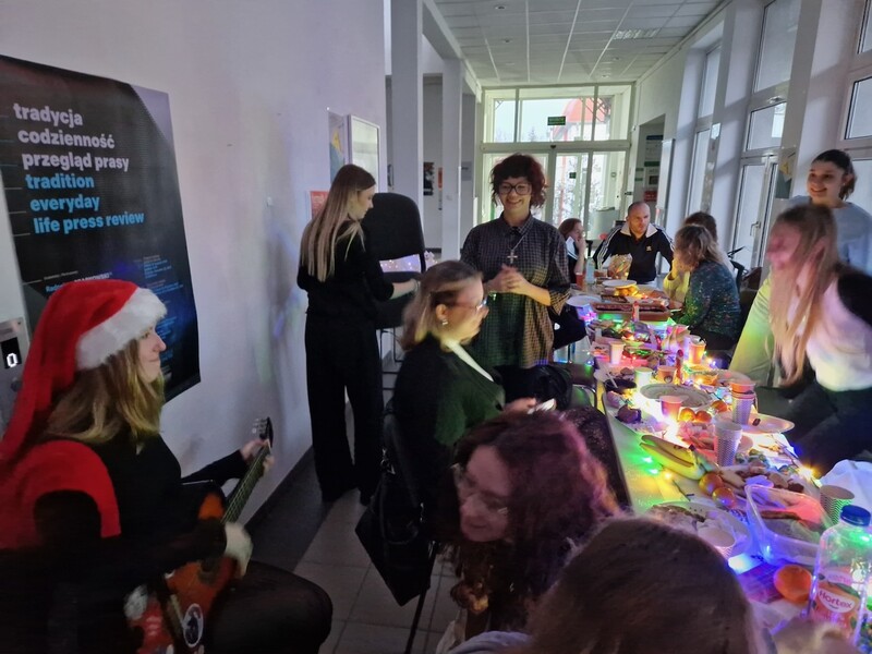W tym roku to przede wszystkim studenci stworzyli wyjątkowo barwny, syty i gwarny artystyczno-wigilijny stół. Spotkanie było okazją, by porozmawiać, pośpiewać, przekazać sobie nawzajem życzenia świąteczno-noworoczne. Graficy wręczali oryginalne zabawne autorskie kartki.