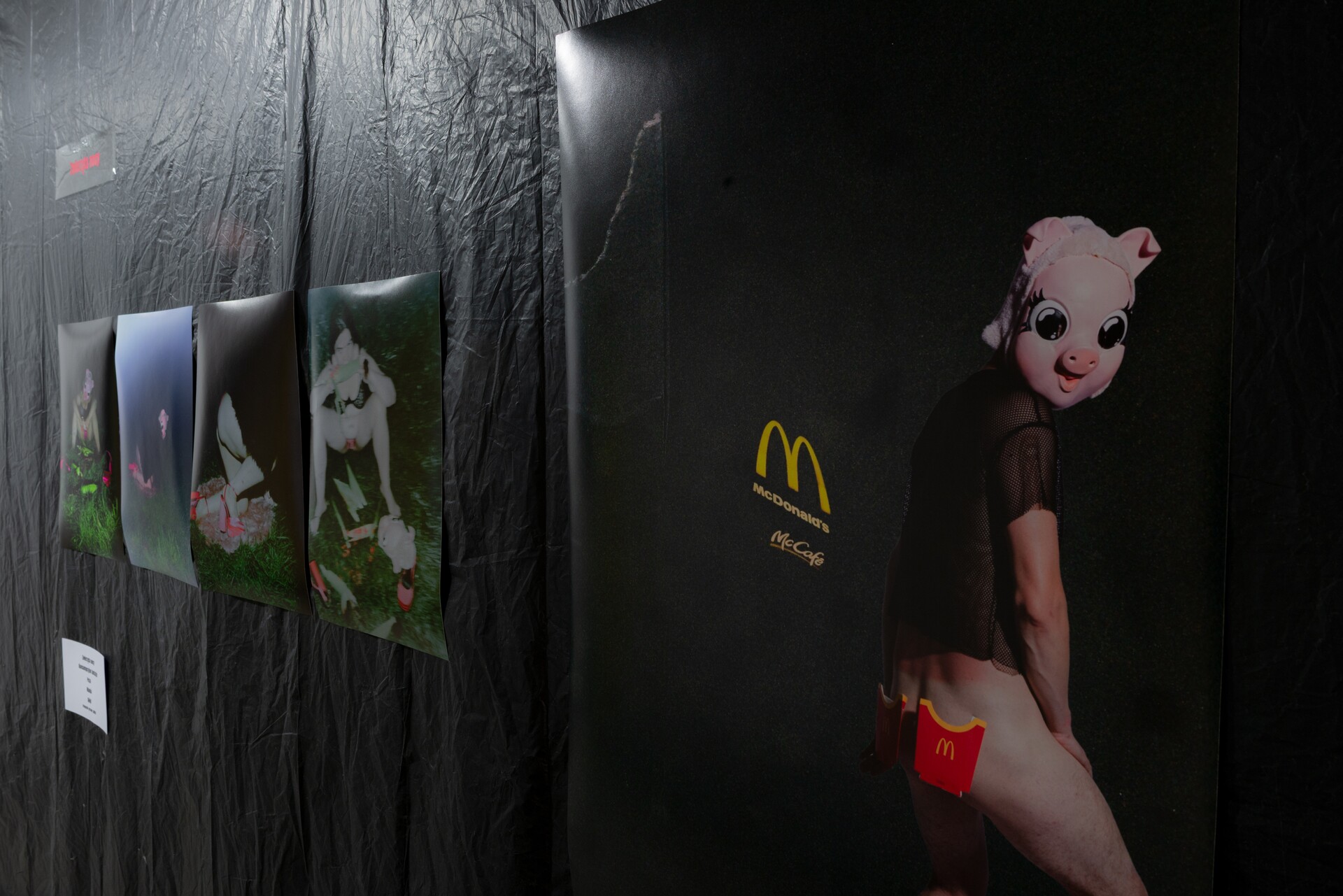 - Chodź! Zabiorę Cię w podróż do świata utkanego srebrną nicią... Surowego, brudnego, a zarazem lśniącego, dyskotekowego niczym z lat 80-tych. Poczuj: nastrój, klimat… Zanurz się w niedookreśloność fotografii. Treść jest otwarta. To dialog z popkulturą, która jednocześnie nas uwodzi i ośmiesza. Kapitalistyczne symbole stają się maskami, w które wchodzimy z własnej woli. W tej pracy interesuje mnie moment, w którym gra zamienia się w krytykę, a krytyka w zabawę - miejsce pomiędzy pragnieniem a odrzuceniem. Fotografie, które chciałabym aby stały się uniwersalnym obrazem niewpisującym się w utarte, przypisane nam historycznie role. Szukanie powiązań tudzież spojrzenie z innej perspektywy na to co wydaje się znajome i mocno osadzone w kulturze popularnej. Estetyka codzienności i jej wpływ na egzystencję. Zwierzęta nocy w fabrycznym transie, fast food, ironia. Kapitalizm jest świnią. My trochę też. I nikt nie musi tego traktować serio! Prezentowana wystawa jest jednym z elementów większej struktury - zapowiedzią i jednocześnie autonomicznym rozdziałem projektu THE FACTORY 777, którego główna realizacja planowana jest w przestrzeni postindustrialnej w Legnicy w czerwcu 2026 roku.