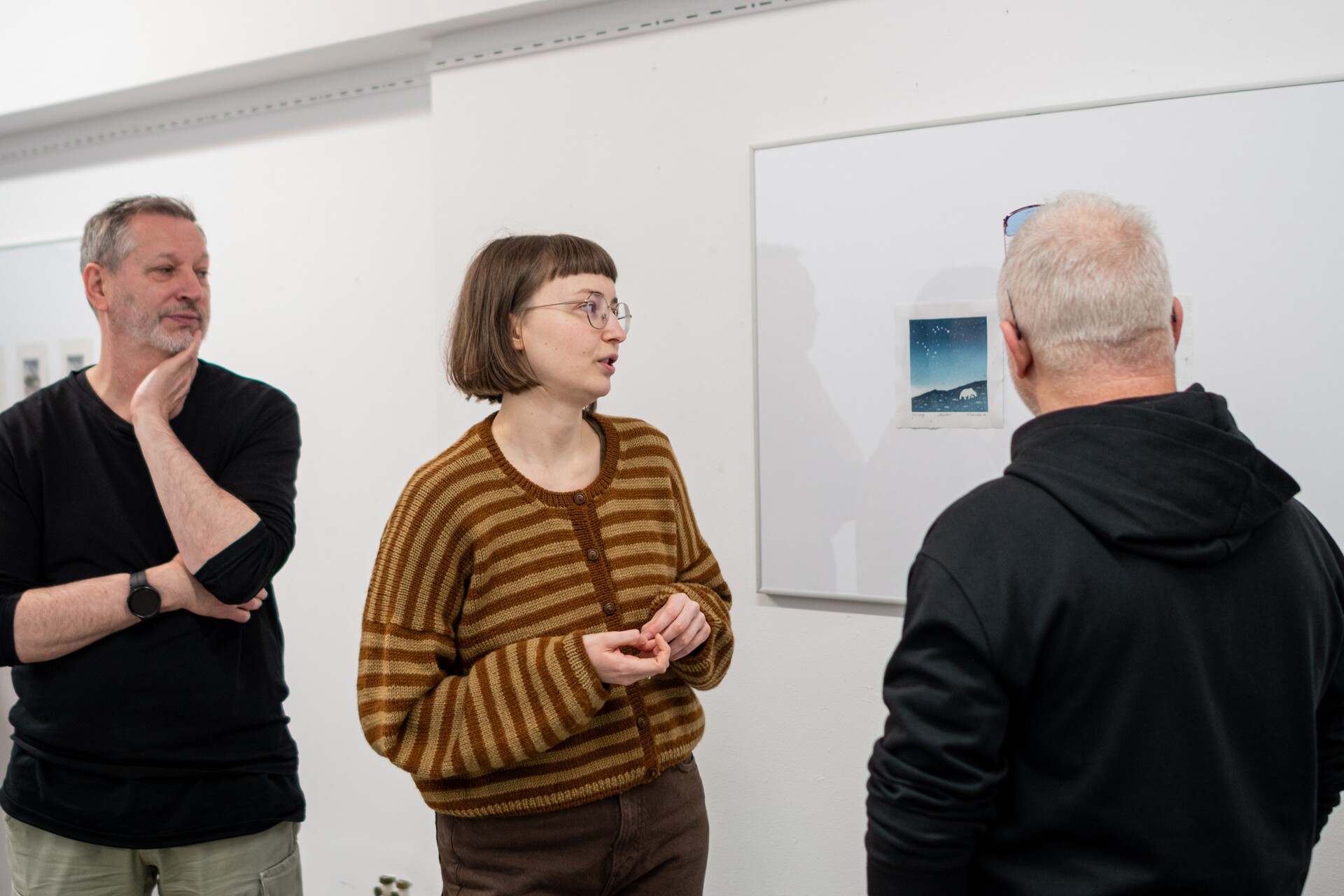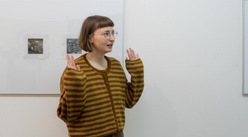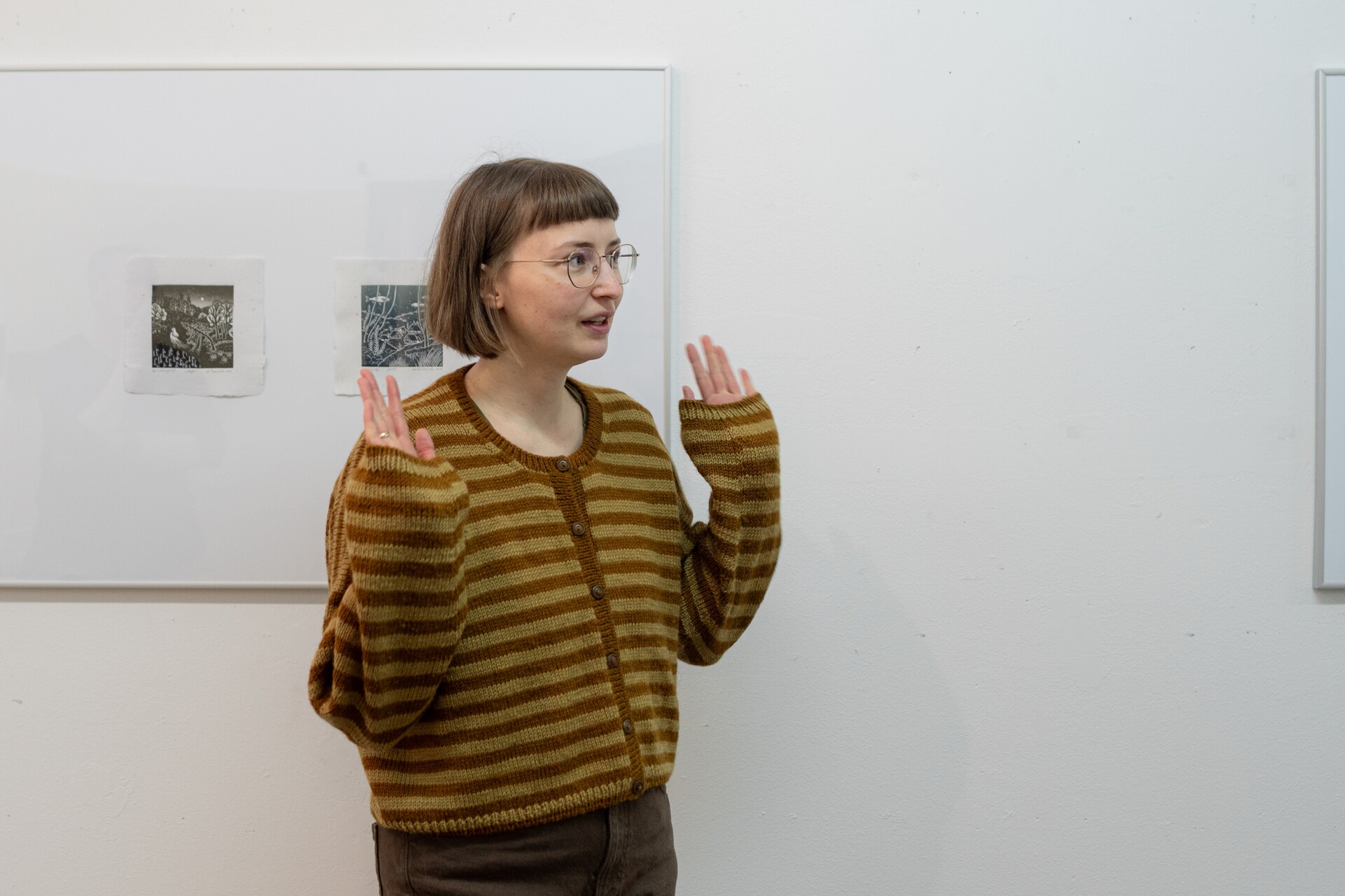 Marta Trawińska - Credo artystyczne Specjalizuje się w linorycie. Inspirują ją baśnie, sztuka folkowa i natura. W swoich grafikach stara się uchwycić ciszę, wspomnienia i atmosferę miejsc. Emocje i sensy często ukrywa w symbolach, które odsłaniają się dopiero przy dłuższym spojrzeniu. Proces twórczy jest dla niej równie ważny jak efekt końcowy. Jej prace powstają powoli. W rytmie, który narzuca sama materia. Niedoskonałości wynikające z cięć, świadomych lub zupełnie spontanicznych, stają się częścią opowieści i nadają grafikom niepowtarzalny charakter. Ważnym elementem jej twórczości jest także podejście ekologiczne. Do matryc wykorzystuje linoleum z odzysku, a odbitki wykonuje na własnym, ręcznie czerpanym papierze barwionym roślinami. Dzięki temu każdy etap pracy ma bezpośredni związek z naturą, z której czerpie inspirację.