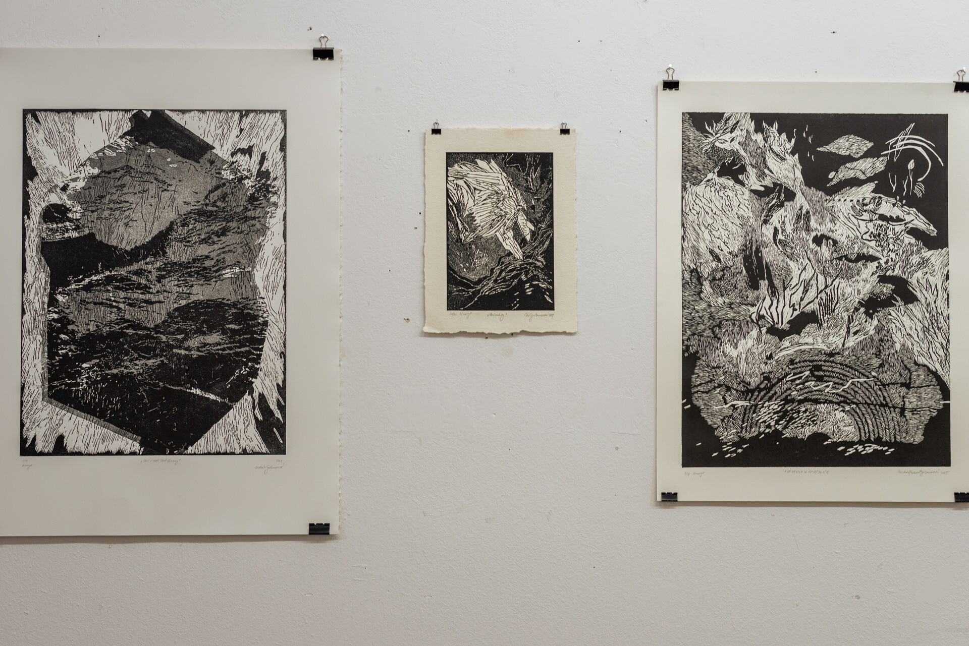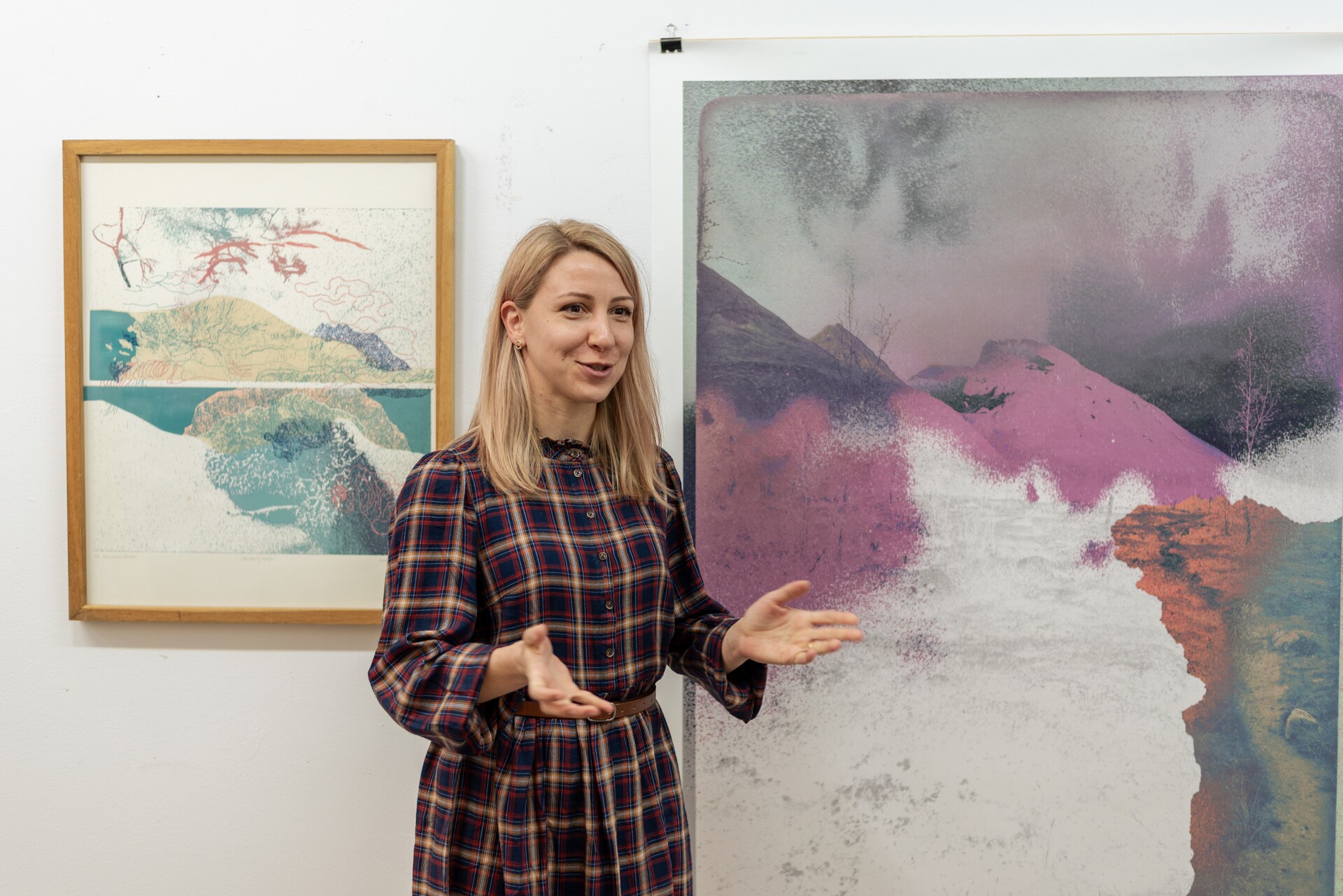 Pracuję w różnych technikach graficznych, takich jak sitodruk, linoryt, druk cyfrowy oraz rysunek, często łącząc je w formy mieszane. Techniki te pozwalają mi badać strukturę krajobrazu na wielu poziomach – od szerokiej formy po detale mikrostrukturalne, jak porosty tworzące na wyżynach skomplikowane, niemal abstrakcyjne układy. Nie dążę do realistycznej dokumentacji; interesuje mnie atmosfera, cisza i materialność miejsca, a także napięcie między tym, co trwałe, a tym, co ulega powolnemu znikaniu.