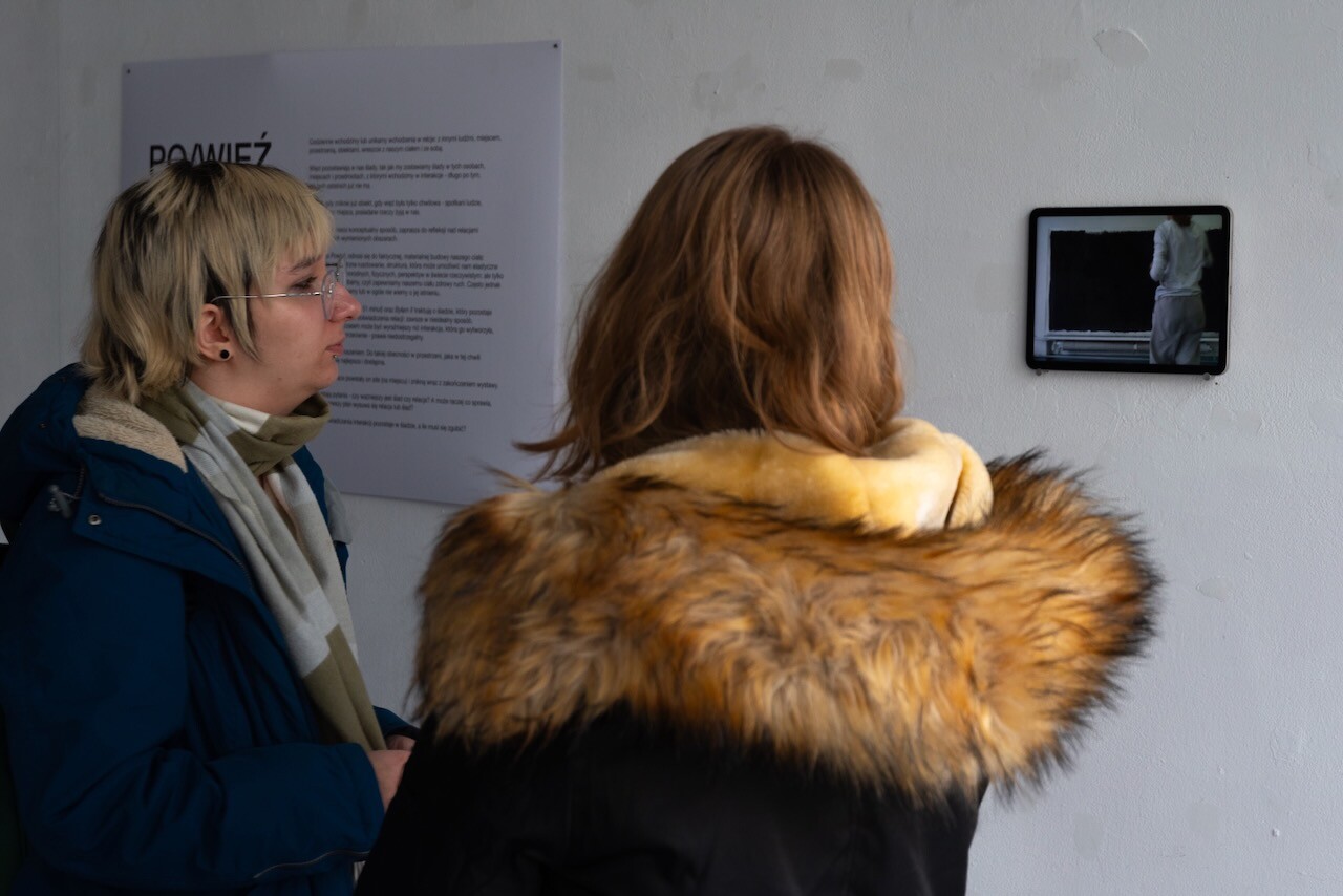 "Codziennie wchodzimy lub unikamy wchodzenia w ogrom relacji: z innymi ludźmi, z miejscem, przestrzenią, obiektami, ze sobą samym. Relacje zostawiają w nas ślady, tak jak i my zostawiamy ślady w tych osobach, miejscach i przedmiotach, z którymi wchodzimy w relacje. Nawet, gdy zniknie już obiekt, z którym byliśmy w relacji, także gdy jeśli relacja trwała tylko chwilę - spotkani ludzie, nasi bliscy, którzy już odeszli, a nawet przygodne, krótkie rozmowy żyją w nas - tak jak żyją w nas miejsca i rzeczy, którymi się posługiwaliśmy, w których byliśmy i które spotykaliśmy. Wystawa, w nieco konceptualny sposób, zaprasza do refleksji nad naszymi relacjami we wszystkich wymienionych obszarach. "