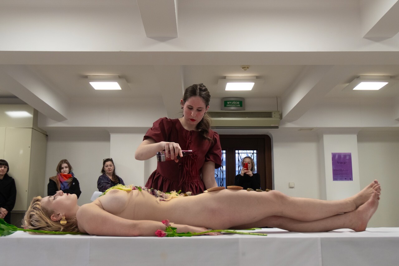 W wystawie biorą udział studentki i absolwentki Pracowni Fotografii i Działań Postartystycznych, jaką prowadzę w Akademii Sztuki w Szczecinie. Składają się na nią prace opowiadające o „zwykłych kobiecych dramatach”. W pracach Anny Bielawskiej od lat powraca motyw jedzenia i niejedzenia. Ustawia się w roli kucharki gotującej zgodnie z zasadami freganizmu albo w POLISH SUSHI zamienia się jednocześnie w obiekt pożądania i podmiot jego zaspokojenia jedząc publicznie polskie potrawy ze swojego nagiego ciała.