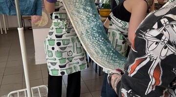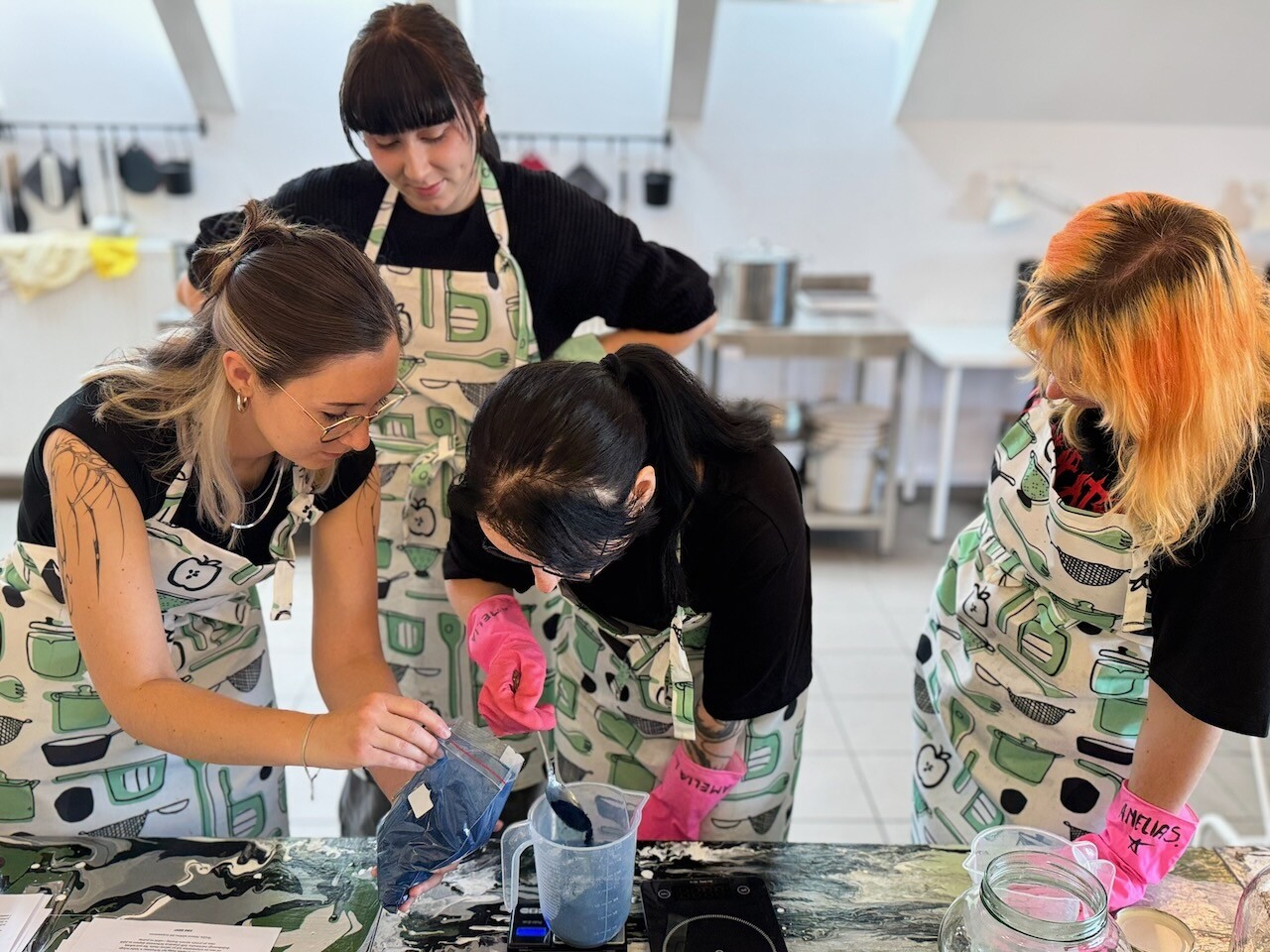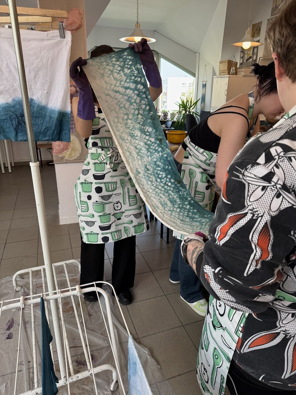 W Pracowni Tekstyliów i Barwiarstwa działamy wspólnie – wspólnie brudzimy i sprzątamy. Zabarwiona włókna zamieniamy w sztukę!