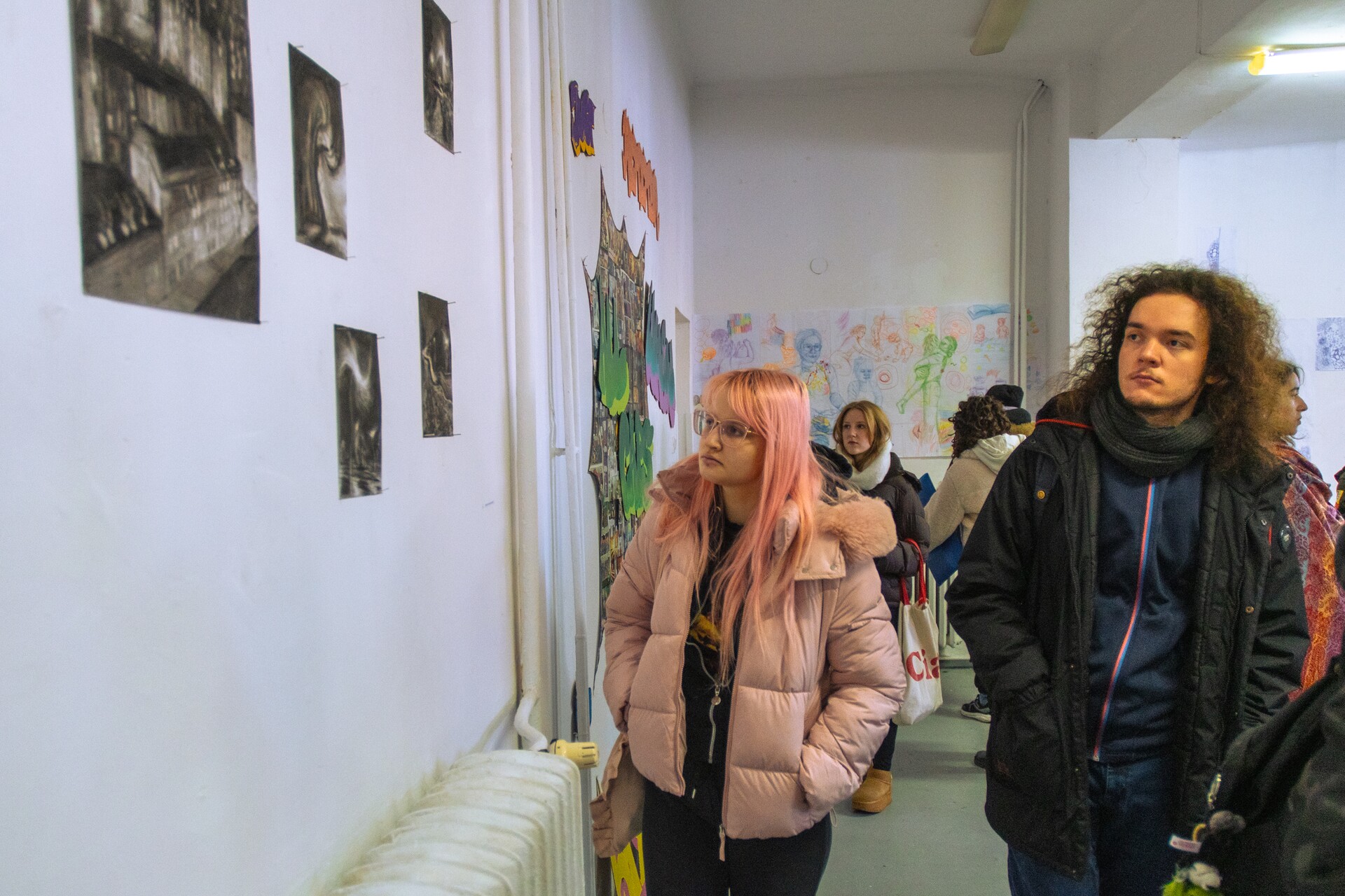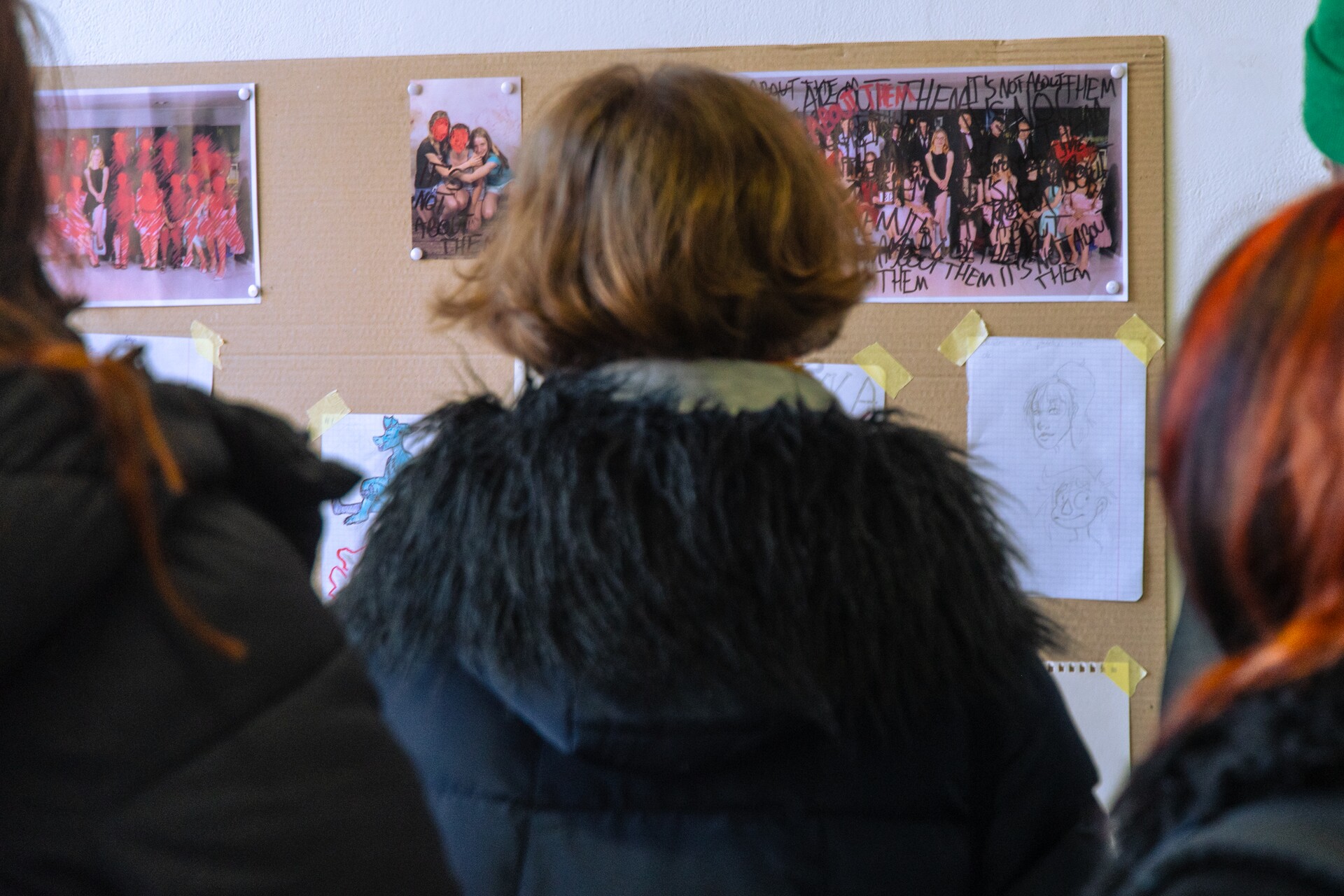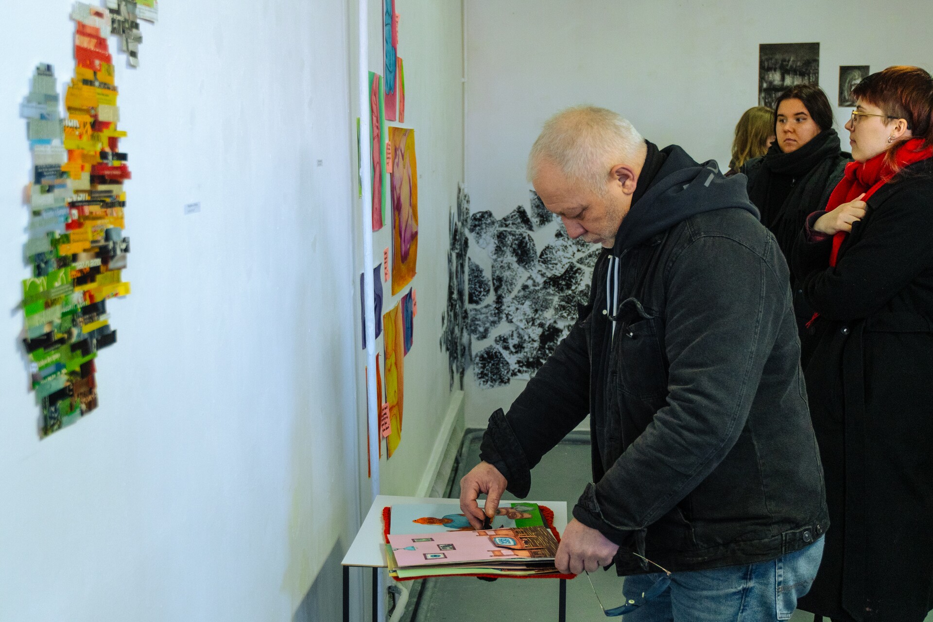 Karolina Chojnacka proponuje zestaw masek nawiązujących do wizerunku zespołu muzycznego Slipknot oraz instalację „It’s not about them”, stanowiącą osobisty komentarz i rozliczenie z okresem szkolnym oraz koleżeńskimi, a także rodzinnymi relacjami. Julita Dąbrowska splata w wielobarwnym rysunku refleksje nad dominującymi w jej życiu rolami. To wielogłos matki/artystki i jej dzieci. Nataliia Gryniaieva powraca w obiekcie – przeskalowanej laurce – do swojego dzieciństwa i bezpiecznego kręgu rodziny. Orestes Karkut pokazuje wideoperformans „List”, opowiadający o trudnej relacji ze sobą. Katarzyna Krzysztofik prezentuje wiwisekcyjne obiekty „Obsesje” oraz książkę artystyczną – zestaw interaktywnych ilustracji/makabresek. Alicja Leśków wypowiada się językiem graffiti i komiksu, interpretując utwór „All Caps”. Angelika Matijczak, sięgając do filmu „Dzień świra”, adaptuje autorefleksyjnie zagadnienie rutyny i natręctw, jako elementu codzienności.
