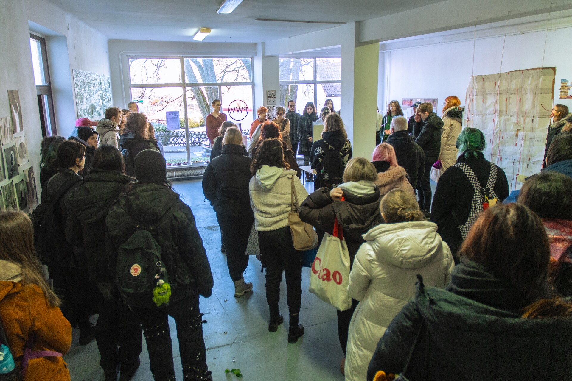 WSZYSTKIE MYŚLI RAZEM to prezentacja prac artystycznych osób studiujących w II Pracowni Rysunku i Intermediów (202), na drugim i trzecim roku studiów licencjackich oraz na studiach magisterskich. Tytuł wystawy nawiązuje do różnorodności koncepcji, twórczych wyborów i powstałych realizacji, skupionych w jednym czasie i miejscu – przestrzeni Galerii PWW. Pokazane prace są autorskimi odpowiedziami na tematy semestralne proponowane w pracowni, jak i własnymi inicjatywami.