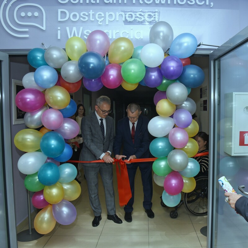 JM Rektor UZ - prof dr. hab. Wojciech Strzyżewski i Prorektor ds. Rozwoju i Finansów przecinają wstęgę na otwarciu Centrum Równości, Dostępności i Wsparcia