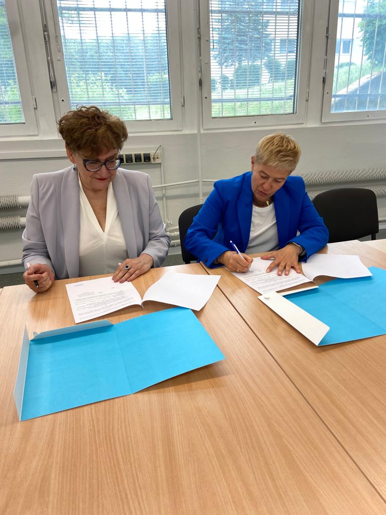 mgr Małgorzata Ragiel - Dyrektor Centrum Kształcenia Zawodowego i Ustawicznego nr 1 „Budowlanka” w Zielonej Górze i dr hab. inż. Maria Mrówczyńska, prof. UZ - Prorektor ds. Współpracy z Gospodarką
